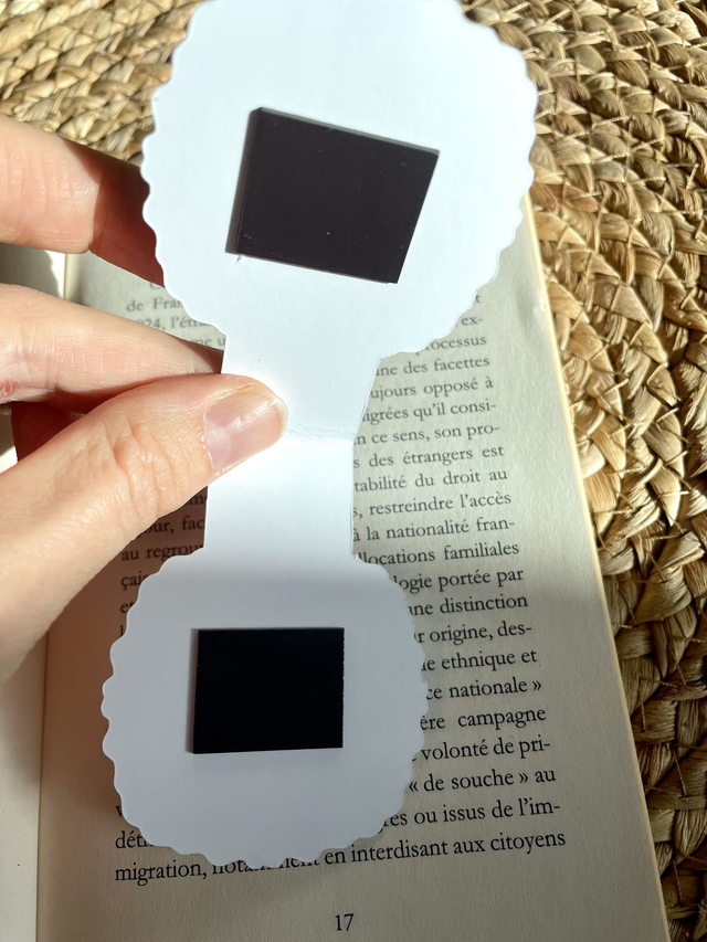 Le signet à deux aimants qui collent solidement sans endommager le papier. Le visuel est recouvert de vinyle transparent pour le protéger et assurer sa durée dans le temps.